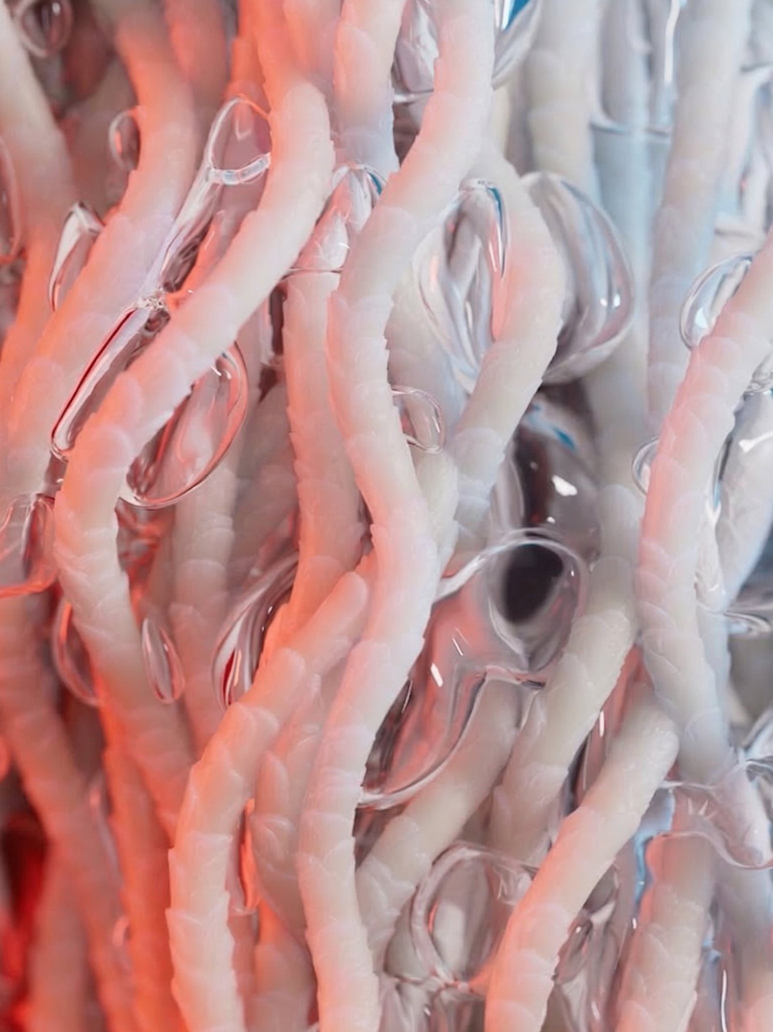 We engineer stable 3D knitted morphologies with controlled ridges and cavities directly on linear double-bed machines (no post-forming), tuning thickness, porosity and areal density to increase the acoustically active surface. Geometry, aesthetics and materials are customizable (incl. printing and recycled fibres where compatible).